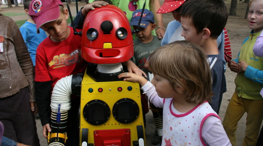 Stanley “Robotman” Povoda is known as the father of Czech robotics. Since he was 14 he has built whatever robots people wanted: robots that play music (and turn the records over), pour drinks from their fingers, light cigarettes right on cue, lift up skirts. He has made underwater robots, a specialized line of robots for children, a dancing robot that now lives in a German disco and has also formed synthesizers like telephones. Theoretically, he can build anything. Except for the electronics inside, the robots are made from discarded and recycled materials and objects because Povoda finds it harder to build a completely new robot out of nothing than to shape it from found objects. He has probably built over 1000 robots, some of them being bought by companies. And he has also made robots for the film industry. His most popular robot is Wédéčko, a disco song-playing robot with a salad-bowl instead of a head. Wédéčkois frequently goes on tour with the Czech band The Prostitutes and has also MC-ed, in a specially designed suit, at the Fresh Film Fest in Karlovy Vary. Stanley Povoda occasionally performs with his very own robot band.