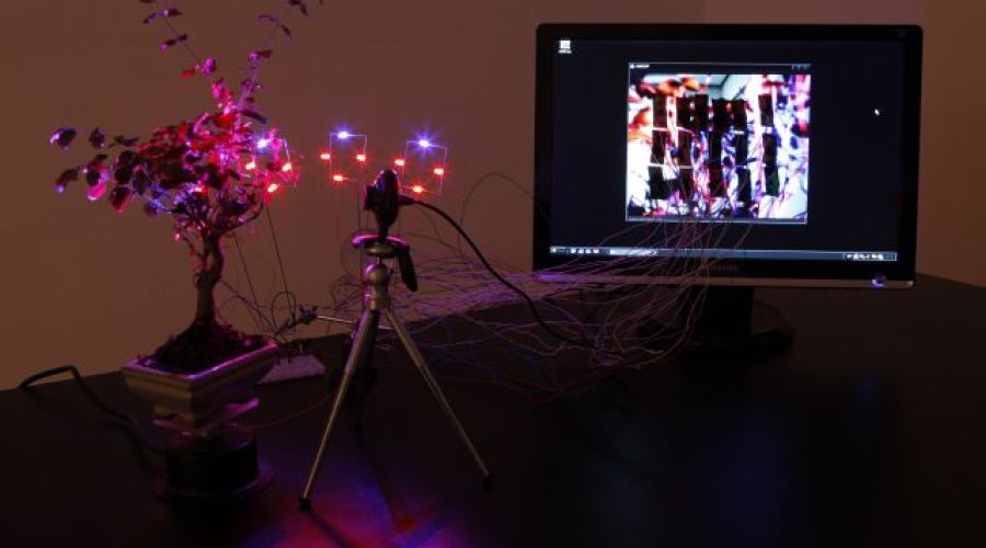 Autonomna instalacija Samoodrživi sustav apsurda bavi se temom reinterpretacije postojeće žive slike. Taj “samoodrživi” sustav neprestano obrađuje podatke iz nadzorne kamere koja je usmjerena u bonsai drvo i istodobno ih transformira kroz low-tech elektroniku u nove audiovizualne oblike.