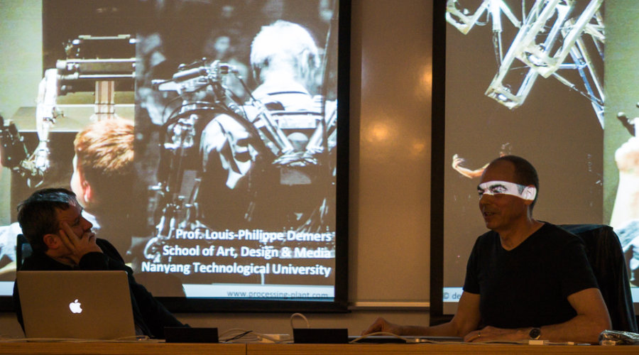 Louis-Philippe Demers živi i radi u Singapuru. Predaje kao viši asistent na Nanyang Technological University, a nedavno je obranio doktorat zasnovan na praktičnom istraživanju u kojemu se bavio pitanjima strojeva kao izvođača. Kao umjetnik radi na koncepciji i produkciji raznih interaktivnih robotičkih instalacija velikog formata i do sada je osmislio više od 350 strojeva. Njegovi radovi s područja robotike mogu se vidjeti u kazalištu, operi, stanicama podzemne željeznice, umjetničkim galerijama, znanstvenim muzejima te na glazbenim manifestacijama i trgovačkim sajmovima.