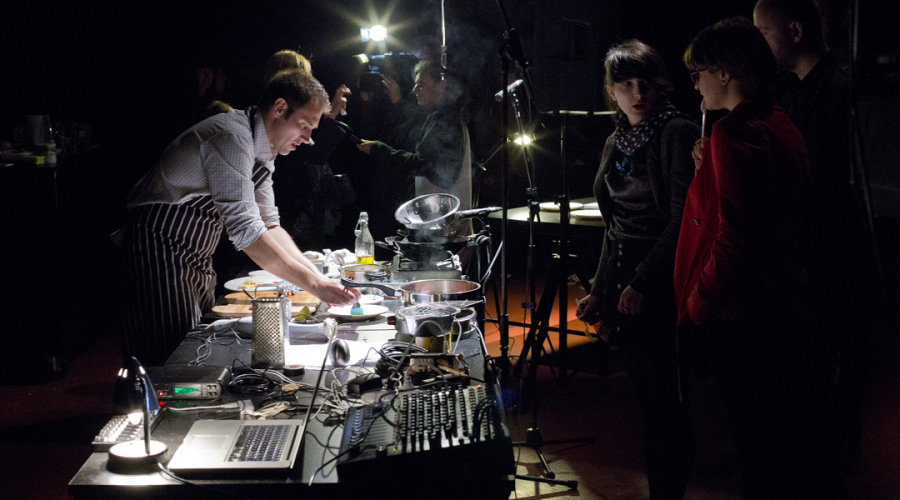 FOODJOB – Frequencies under the tongue , a gastronomical sound performance by Enrico Ascoli, first performed at the Interferenze festival in Bisacca in 2010. A multisensory, synesthetic musical-culinary experience of food preparation which generates a sound composition in real time, accompanied by a sampling of the prepared delicacies on the spot. A seductive merge of olfactory, auditory and visual sensations with extremely delicious and edible byproducts achieved in a melodious ambiance created with the help of panoramic recording and piezo electric microphones which transmit the resonances during the food preparation process. The new, Zagreb FOODJOB variant is created through an Italian-Croatian collaboration between two great foodies: Enrico Ascoli and Mario Bobanović will join forces to create and play a unique melody of fish specialties preparations which will surely be a pleasure for both ears and mouths alike.